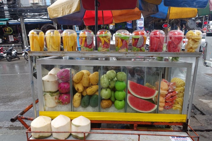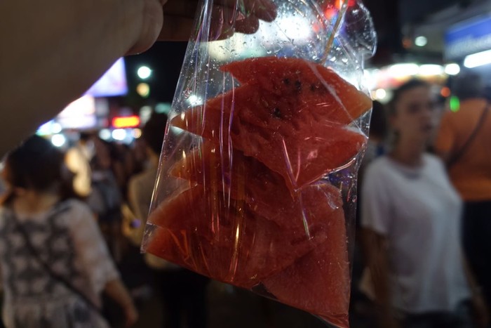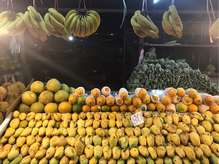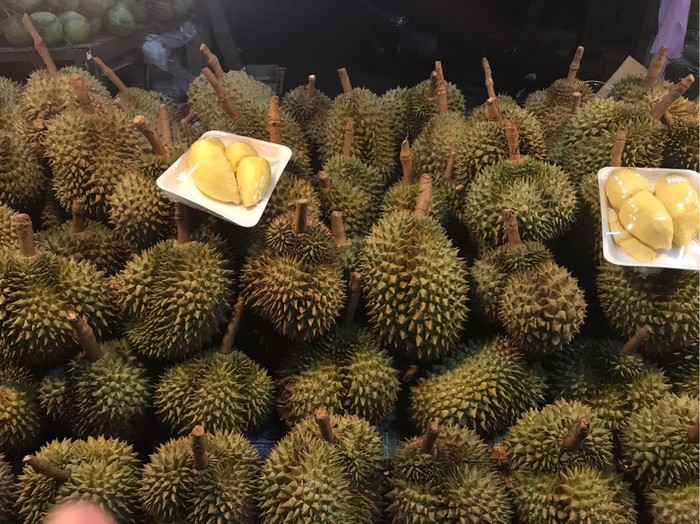 吃饱去夜市逛了一下,买了一份榴莲,很便宜,超级好吃,是我们在泰国吃过最好吃的榴莲。当时我看见有几个本地人在这家买,所以在众多水果摊中我果断选择了这家,果然没选错!是不是很聪明呀