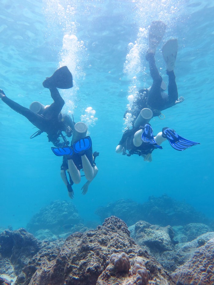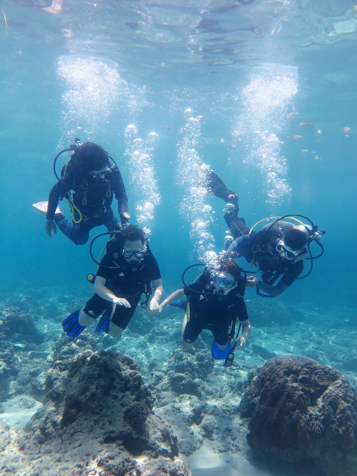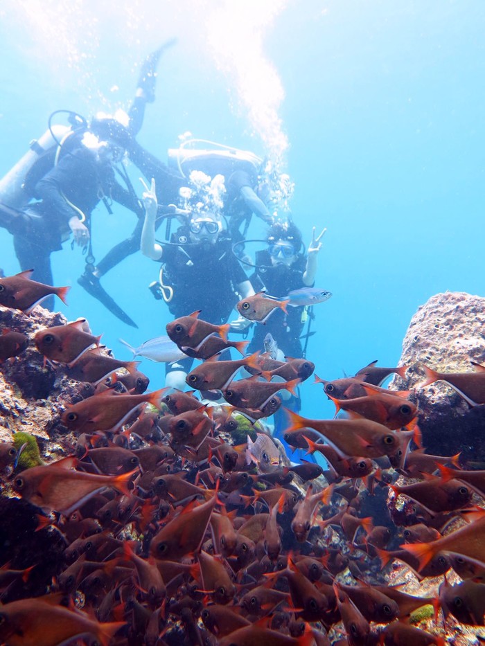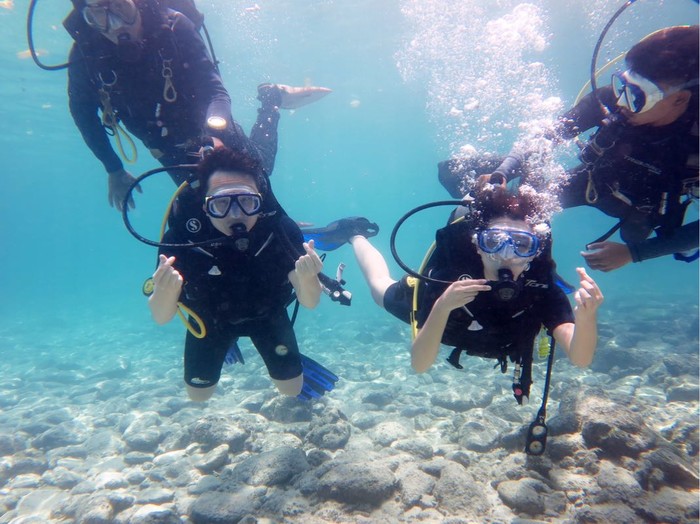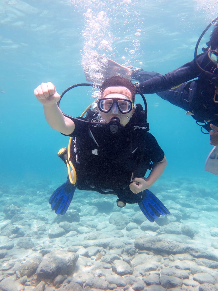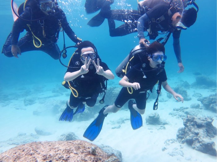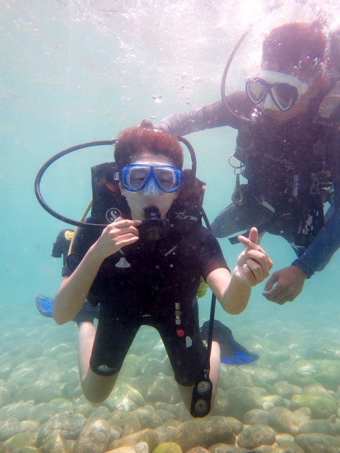 我们潜到了12米,中间有好几次耳朵疼,做耳压平衡就好了,还有深潜24小时之内不要坐飞机哦!