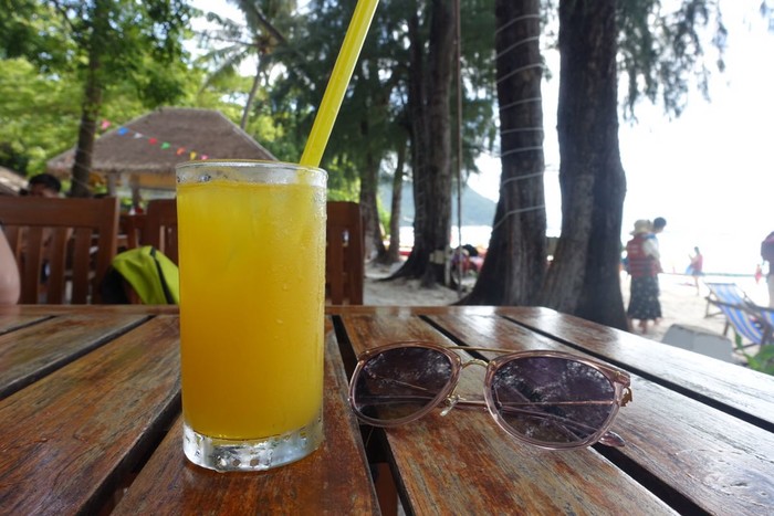 到了珊瑚岛,我和小明都累趴了,根本玩不动了,所以只好点杯果汁坐着吹海风咯