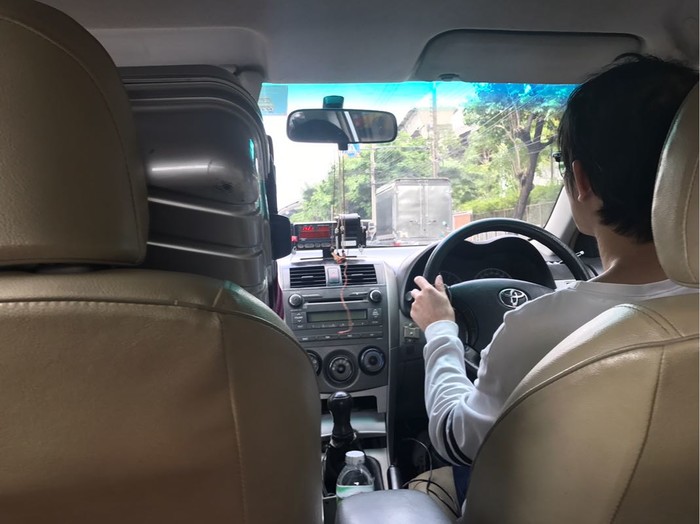 一个坐在副驾驶的行李箱,巨大行李箱,后备箱放不下