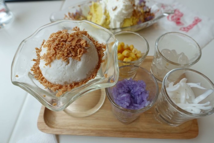 芭东江西冷是一个综合性大商场,是一个买买买吃吃吃的好去处,我们没啥想买的,那就去吃冰淇淋吧,Swensen's是泰国的一家冰淇淋连锁店,很多大商场都可以见到,江西冷店就在一楼门口,环境不错,坐下来服务员就送来了两杯冰水,我们点了榴莲味和椰子味的,感觉有点太甜了