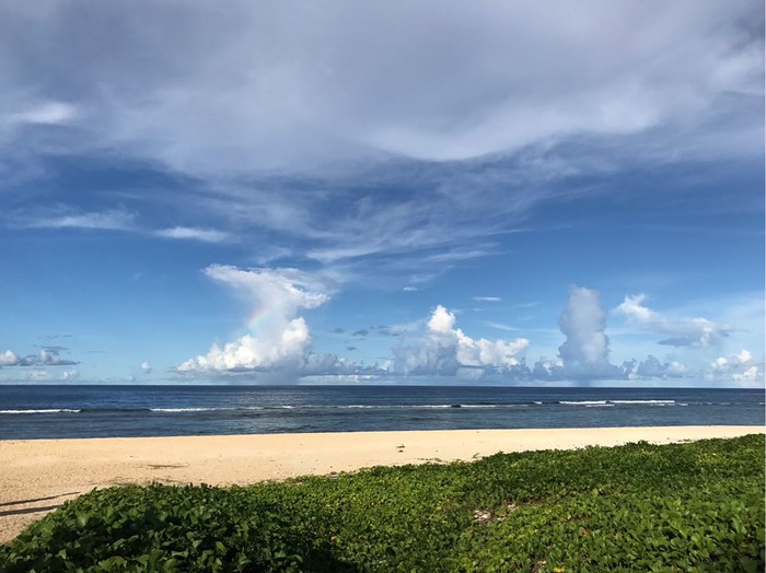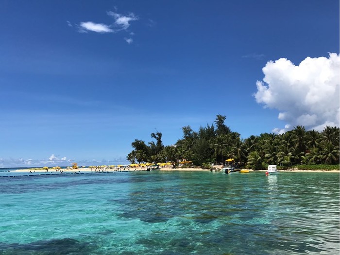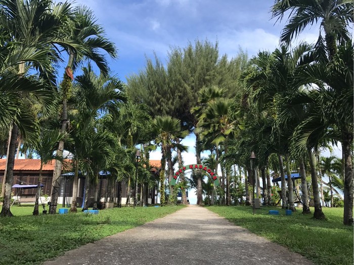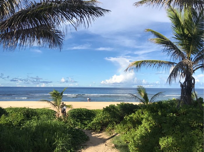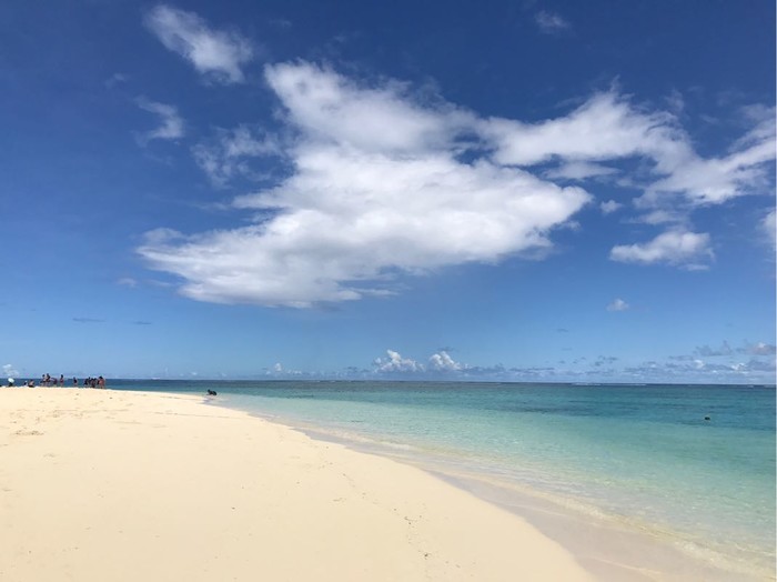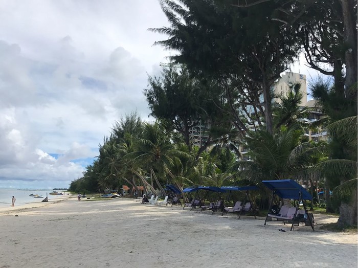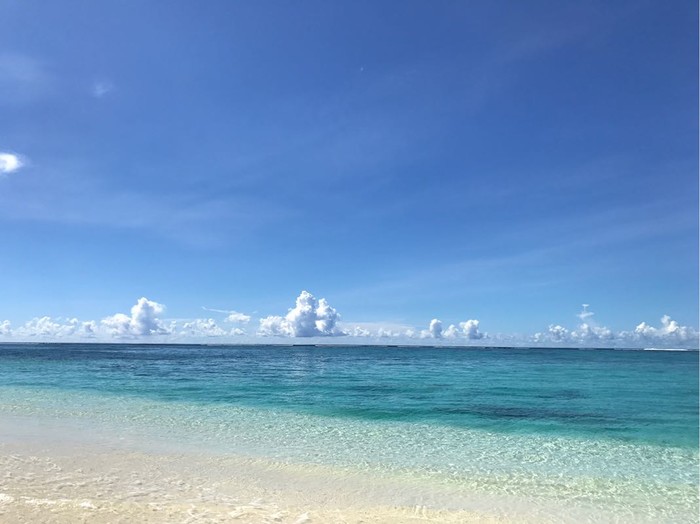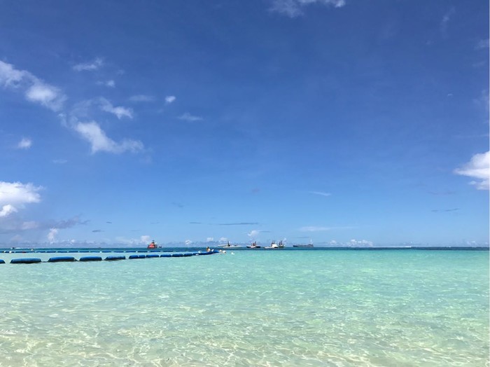 放眼望去,水天相接,美翻了!海水清澈、沙质细软、椰树成荫