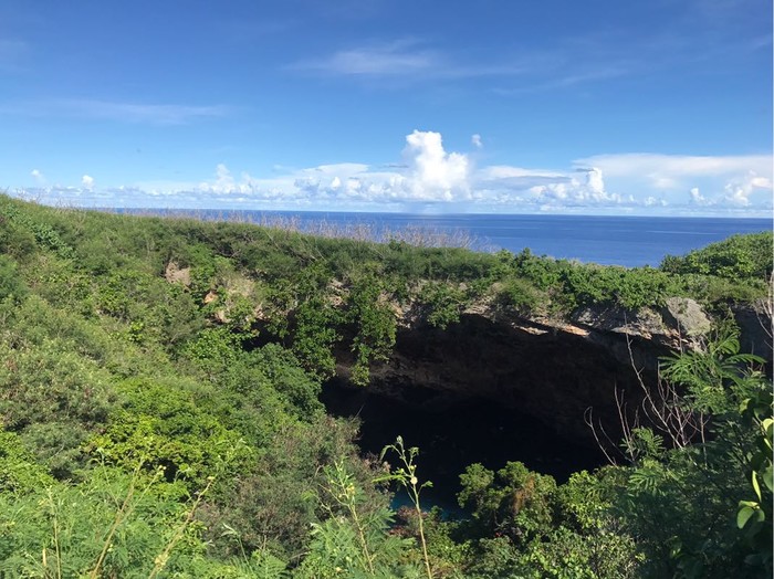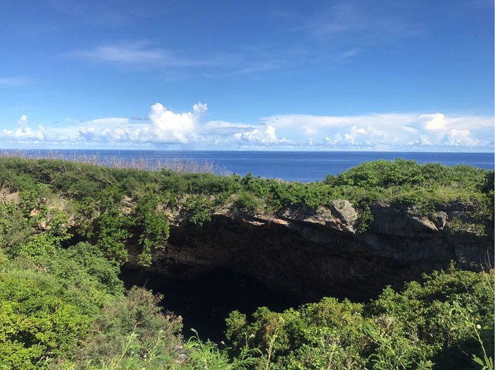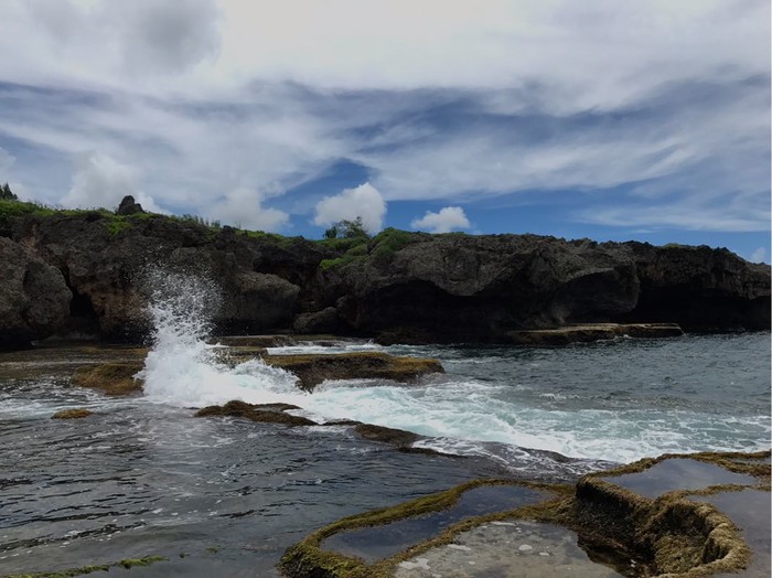 蓝洞(The Grotto)在塞班岛的东北角,是塞班最著名,难度高的潜水地点,东北角的地质是珊瑚礁形成的石灰岩,蓝洞最神奇之处,就是石灰岩经过海水长期侵蚀、崩塌,形成一个深洞,蓝洞水池内能透出淡蓝色的光泽,相当美丽。