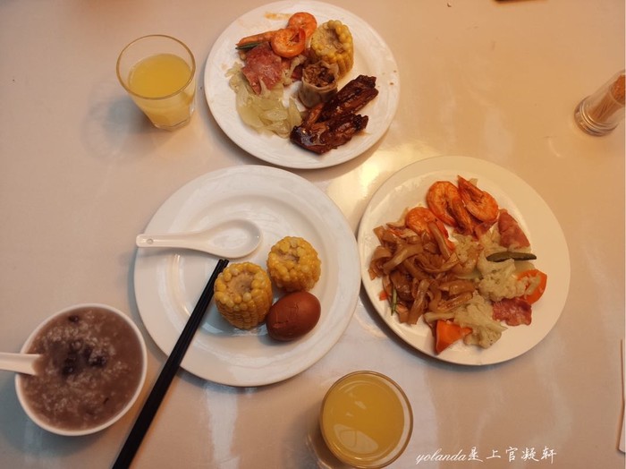早上在宾馆吃的自助餐,38元一位,比较划算,虽然品种不多,但比起机场餐要好多了。
