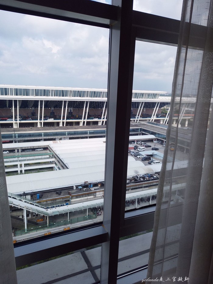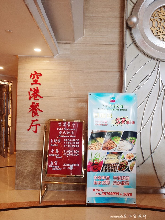 上海大众空港宾馆是由南北两楼及空中酒吧组成。宾馆南北楼中间有个电梯口,下到一楼东边是二号航站楼,西边是一号航站楼,走过去很方便。不过吃东西只能去机场吃,还是坐电梯到一楼往航站楼方向找。过了十点二号航站楼只有汉堡王,一号航站楼有麦当劳,星巴克,走到头过安检有个餐厅。