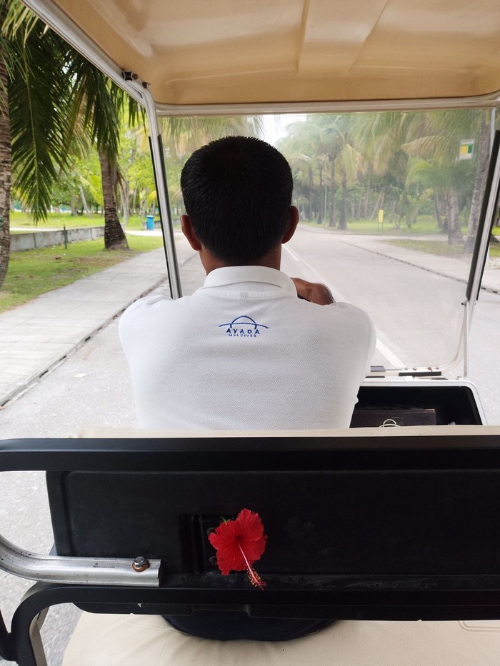 下飞机就有阿雅达岛的工作人员接待我们,带我们去码头坐快艇,机场离码头坐电动车只要两分钟,走走也不远,沿着这条路一直走就到码头了。还给了我们一张名片,是我们管家cindy的名片。