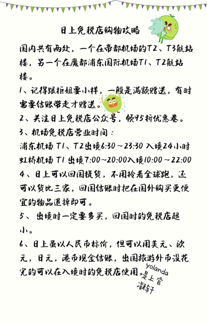 托运好行李后排队过安检,通关后就是日上啦,掌握好时间买买买吧。