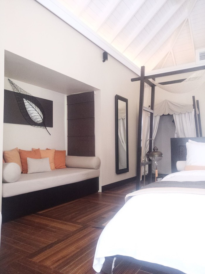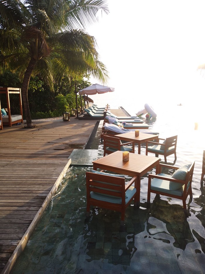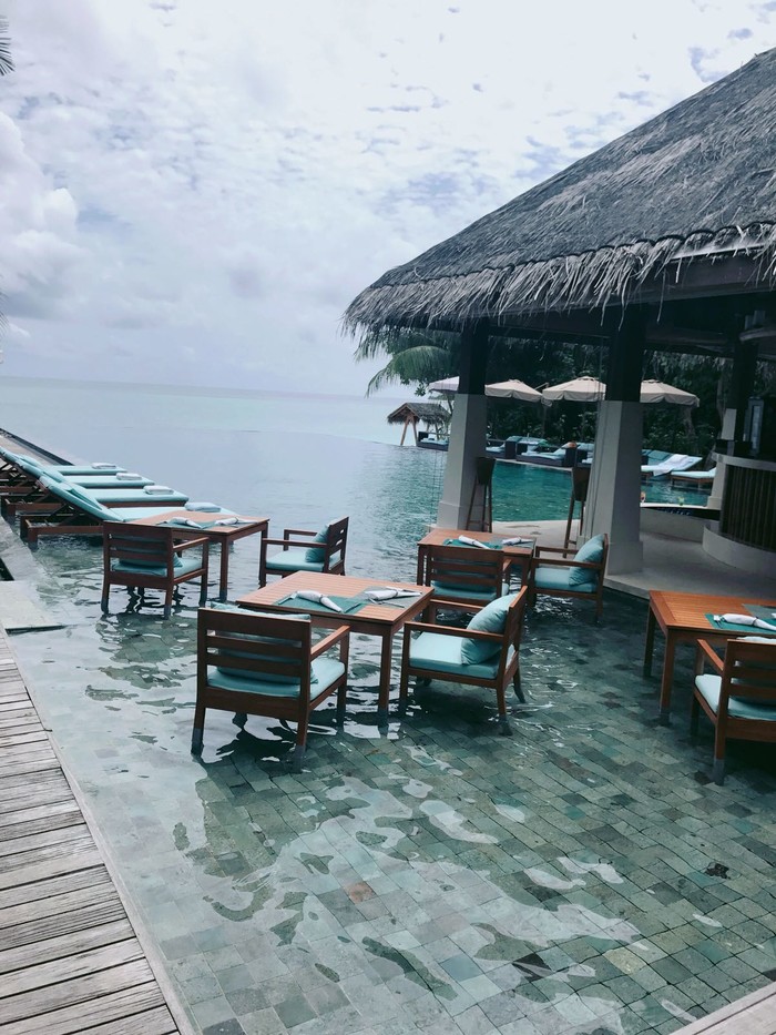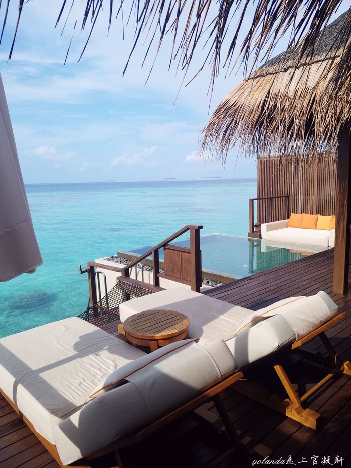 马代修建了度假酒店的珊瑚岛有一百多个,从四星到七星不等,价位更是参差不齐。选岛首先确定预算,然后根据自己的喜好需求选择。家庭出行选择含家庭保姆服务的,喜欢浮潜选择岛屿浮潜等级高的,追求性价比选一价全含的。对于我来说最看重的就两点,一是酒店房型要漂亮啊,拍照要好看啊;二是要有无边泳池啊,沙屋水屋都要带泳池啊。于是选择阿雅达岛就变成了一件顺理成章的事。酒店是土耳其风格,大师设计,橙色的点缀彰显了奢华。沙屋除了花园别墅都带私人泳池,水屋更是有无边泳池,除此之外,岛内零度酒吧的广阔无边泳池更是让我动心。