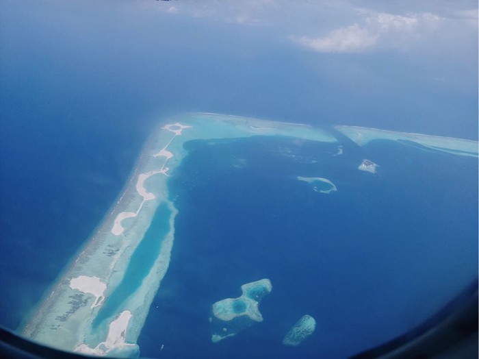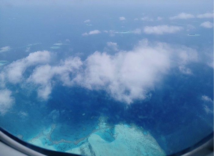 内飞刚起飞的时候可以俯瞰马代,但到高空的时候就看不到了。