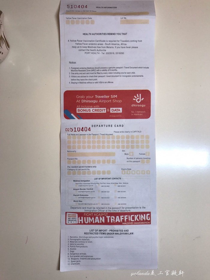 入境卡模板 (非必备),填写很简单,过关时小黑根本不看的好吗,直接撕下来,之前填错想让空姐重新给我一张填写,空姐说没有,让我划掉重写,结果入境时也根本没事,记得把马累海关工作人员撕下的出境卡保留好,回国时要用。