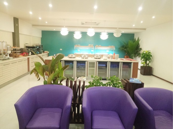 庆幸没在马累宾馆吃早餐,阿雅达岛候机室里面的自助餐好吃太多了。饮料食物wifi全免费,饮料还可以带到岛上去喝,要知道岛上饮料最低都是10刀起步的。离开时跟工作人员打个招呼后在前台拿了本马尔代夫官方住宿指南,有各国版本,记得拿中国版的。