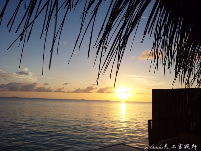 日出从沙屋直接走到沙滩就可以看到,日落在泳池酒吧那边的海滩看最好。不是每天都有能看到日出日落的,所以还是少睡懒觉吧,美景不可辜负。