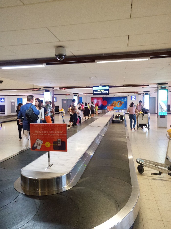 然后开始排队办理入境检查,把护照和在飞机上填好的入境登记卡给海关工作人员。通过入境审查后,来到行李提取大厅等待行李(只有三条行李带),领取行李后安检通关。旁边有个海关检查处,有需要申报的物品,要填写好海关申报单到检查台接受检查,如果没有申报,可以直接通关。一般海关申报单都不填。