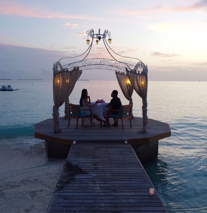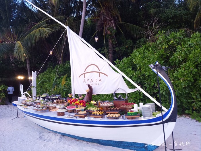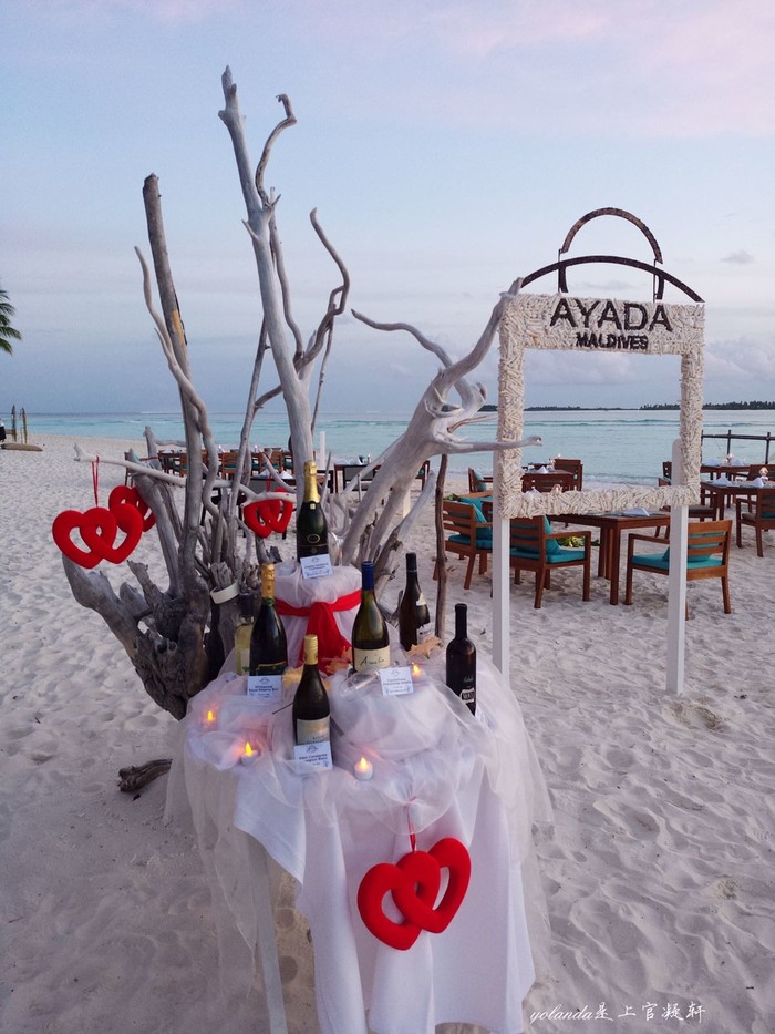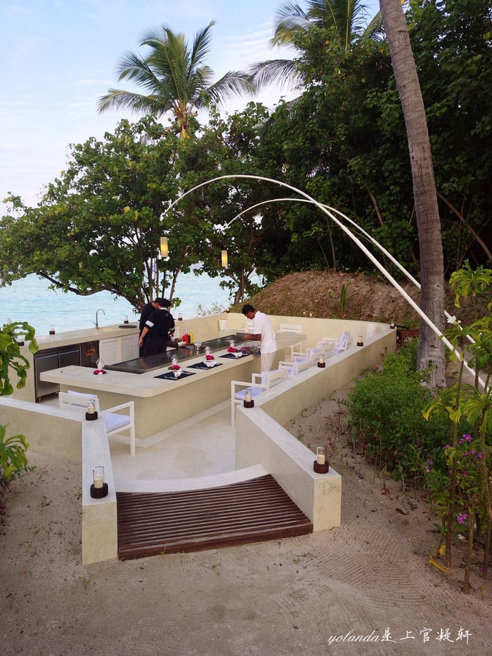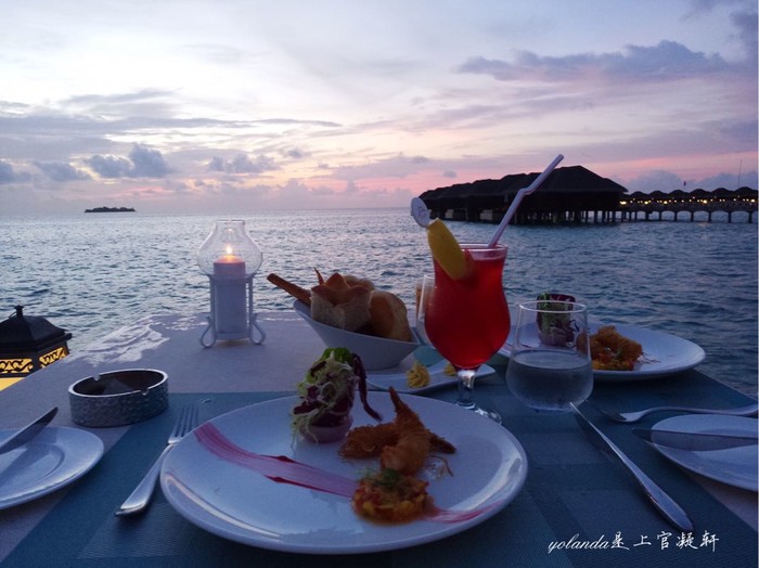 蜜月服务享受一次晚餐。可以选零点酒吧旁沙滩的小亭子、地中海餐厅或亚洲餐厅KAI。