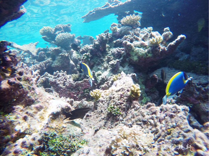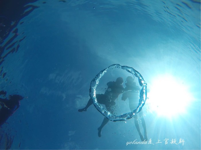 一个小黑负责两个家庭,因为我说我不会游泳,小黑全程带着我,一直说relax relax,感觉很负责。水下的照片都是小黑帮我们拍的,教我们摆造型,还吹出一个水圈替我们凹造型。