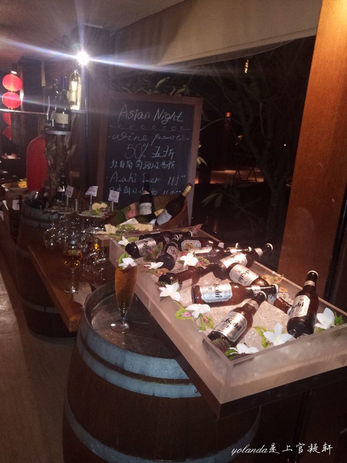 早晚餐都是在主餐厅MAGU餐厅吃的,餐厅每天主题不一样,有亚洲主题、印度主题、中国主题等,种类比较多,很丰盛。不过需要注意的是早餐饮料免费,晚餐饮料酒水全部自费,果汁一般10刀一杯,鸡尾酒18刀一杯。