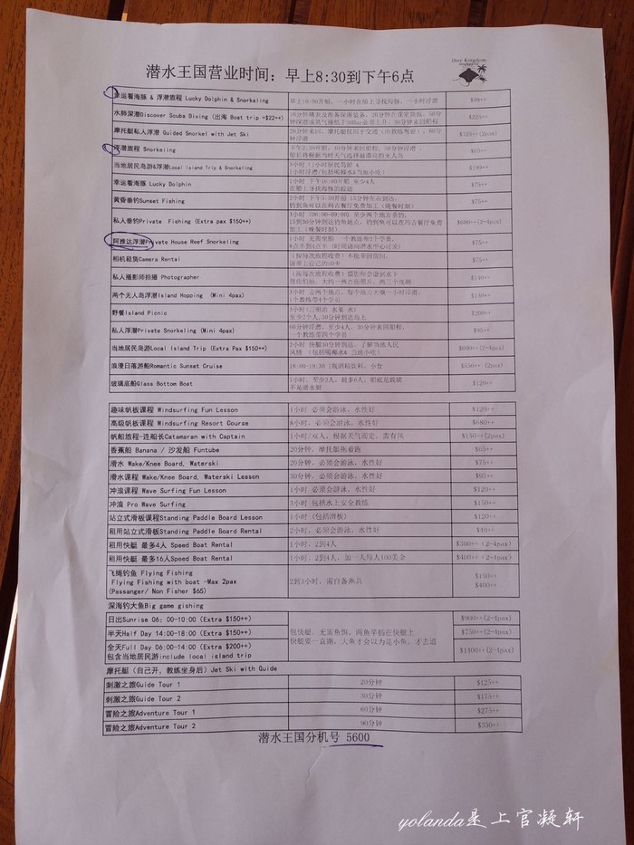 岛上出海项目很多,可以根据需要选择。出海项目价目表献给亲们~
