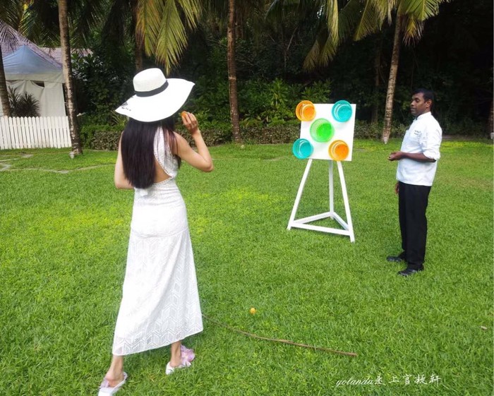 上岛第二天在白色教堂那参加了鸡尾酒会,其实就是大家一起做游戏,用赢得的卡片换饮料跟小吃,游戏都很有意思,大家的参与感很强。除此以外,白色教堂也是很美的拍照点哦,新人可以在这里举行婚礼。具体费用可以问下前台或管家。
