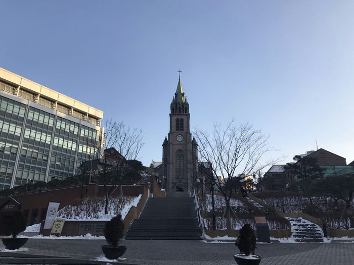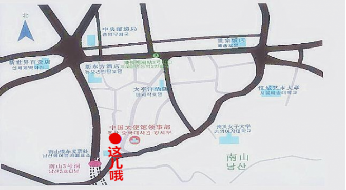 然后去找明洞换钱的地方,[确实有点难找,是在中国领事馆对面(我也找了好久,还定位错了,走到了南山塔附近的中国大使馆,手机都冻到关机了,幸好附近的商店会中文),就是明洞地铁5出口上来往回走有个分岔路,往有人站岗那边走,不是近马路那边,一直走就是了。马路那边有间卖饰品质量还不错,就是有点小贵。]