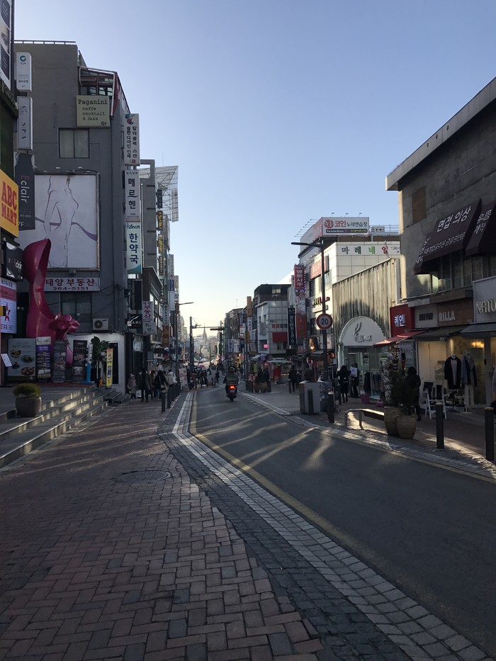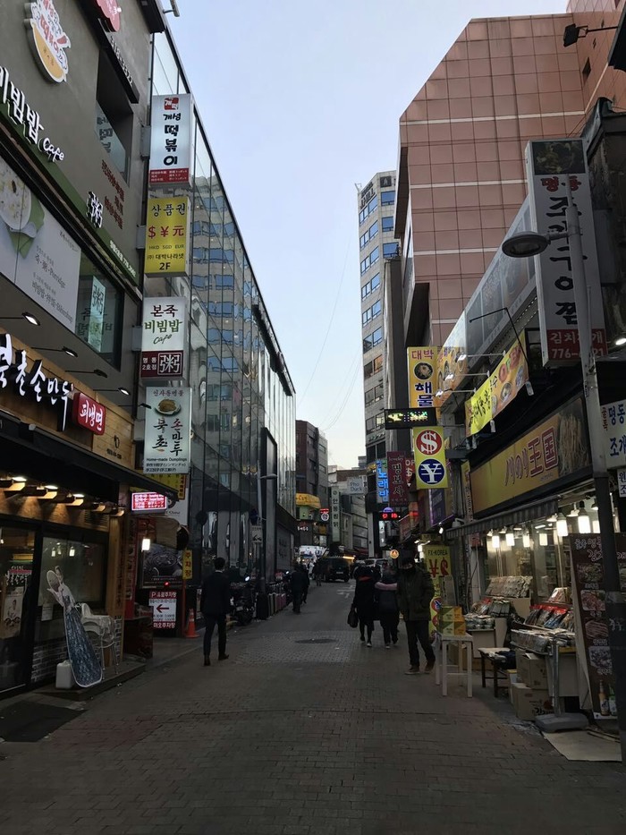 到弘大天已经开始黑了,看地图往里面拐进巷子,这里附近好像平时会与很多人街头表演,听说很多帅哥,虽然是除夕那天但还是有几个在表演。