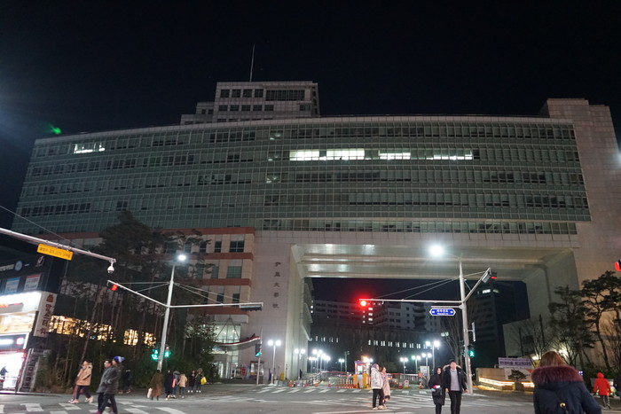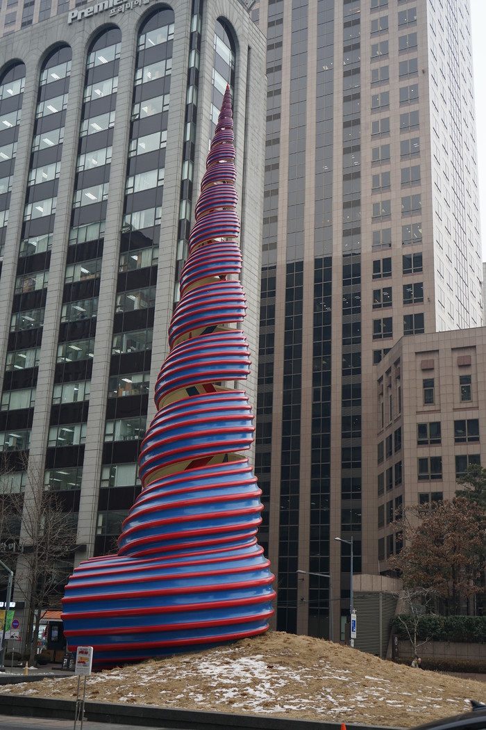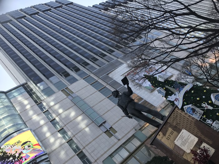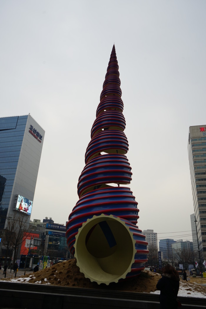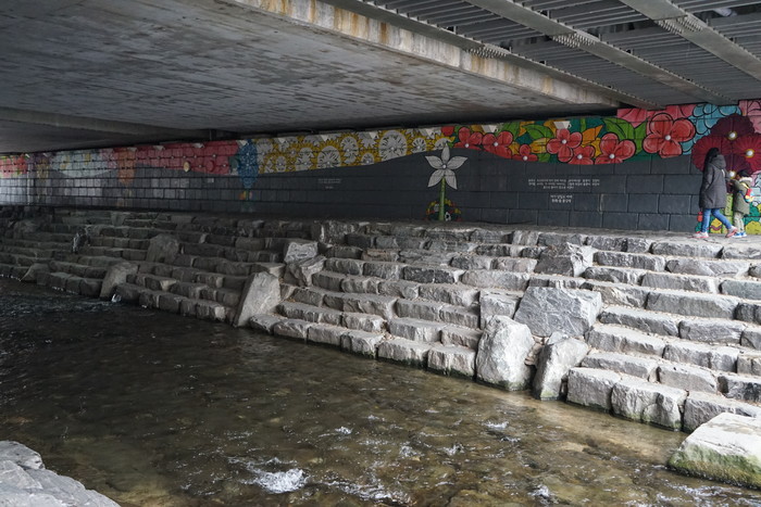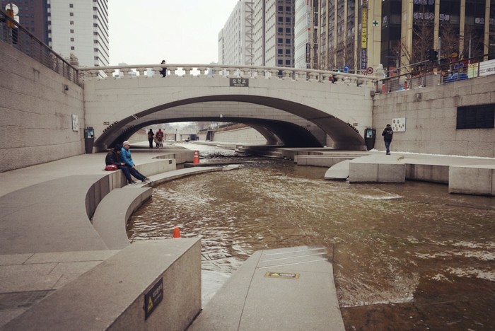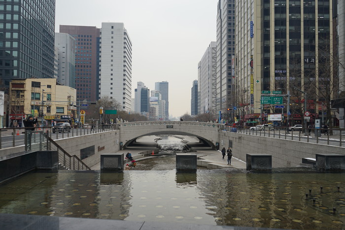 往将军背后走就是清溪川,会经过一个免税店的 (这里还有青瓦台和三清洞可以去),清溪川非常长,一直快通到东大门那边