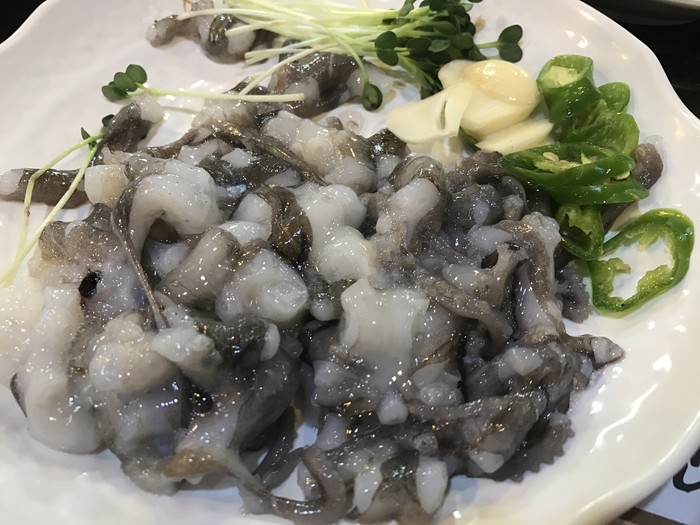生章鱼不好吃,很新鲜,还会动,很难夹。虽然是点酱吃,可是本身一点味道都没有啊,不推荐。