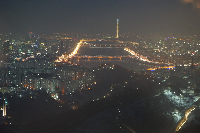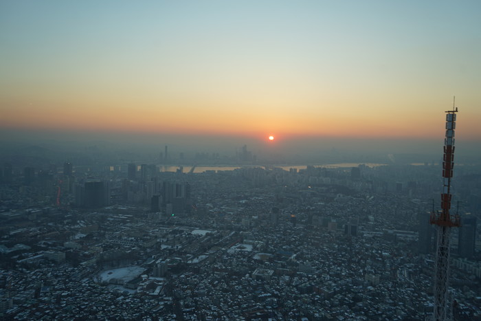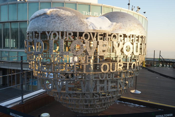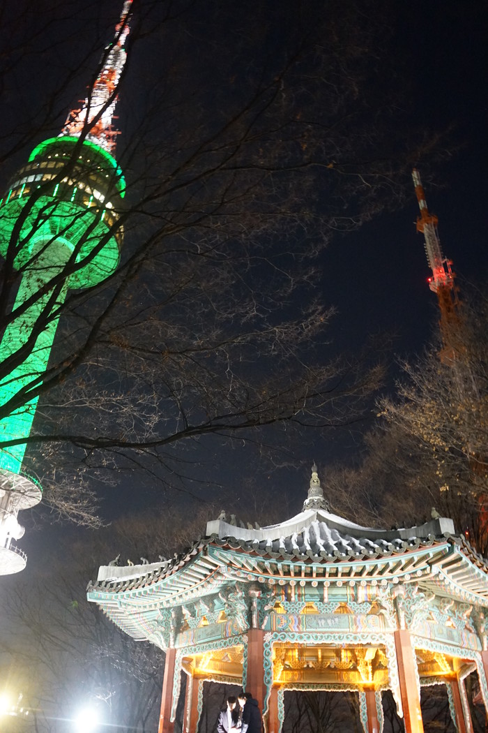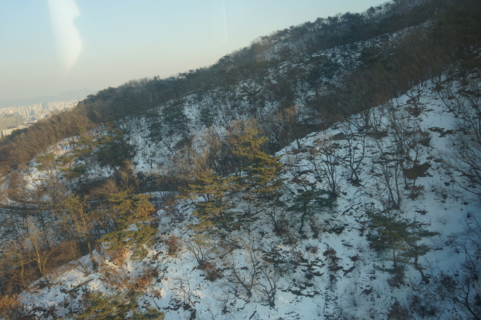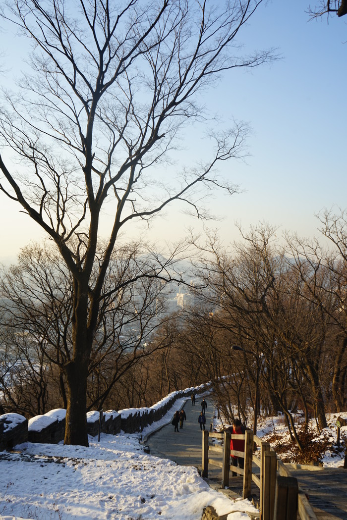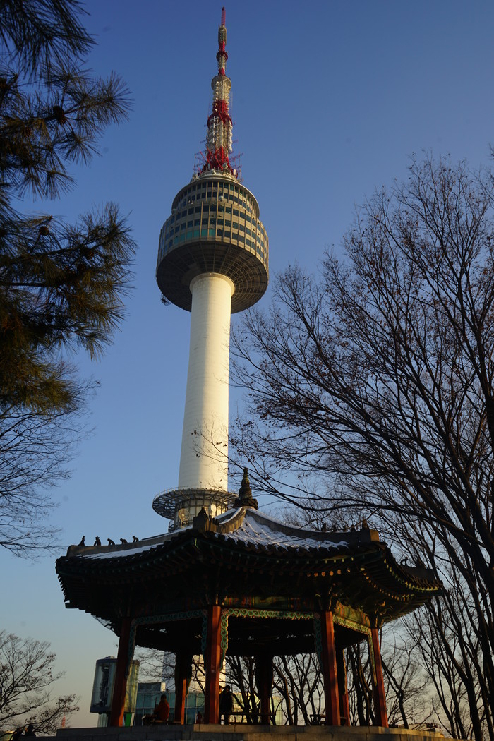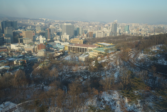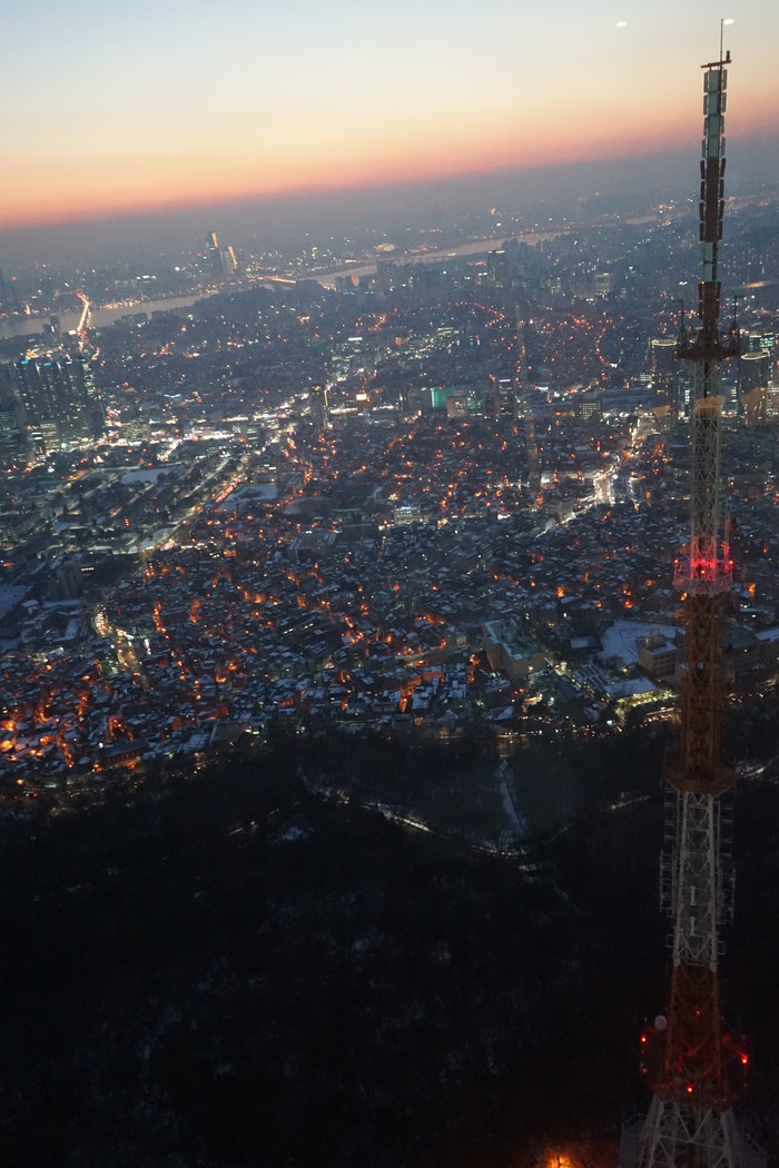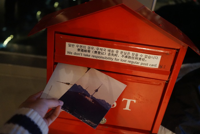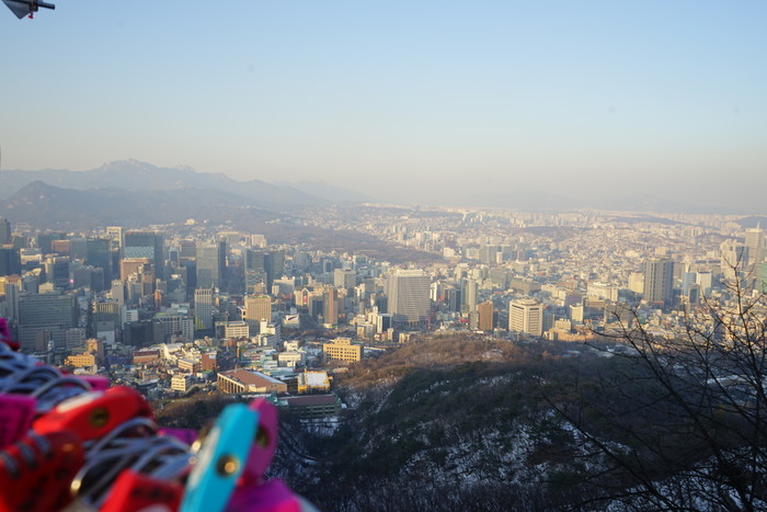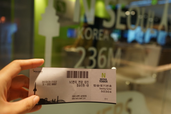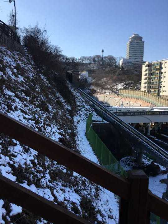 打包一份给我姐送去之后出发去南山塔,根据昨天经验手机和相机贴好暖宝宝,跟着攻略到缆车点(人均50rmb)[地铁4号线明洞站3号出口 3.4号出口之间有条小路,拐进去看到太平洋酒店,沿着酒店右边路上去,10分钟左右就到缆车],买票候车(其他攻略说还可以坐电梯可以到缆车的,不过当时我离电梯也蛮远的)当时已经下午3点左右,准备看日落和夜景。