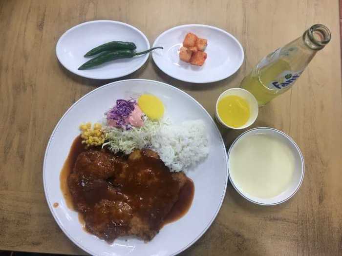 上去以后满好找的,只有两家店在营业,店铺的楼梯有一排签名,店在二楼,员工会中文,店主老奶奶即使不会中文特别热情,一直叫我多吃点,不过说真的,味道真的一般般吧,可能我点得是芝士猪扒饭,芝士另外用个碗盛给你,里面没有芝士,这样吃很容易腻,不过我给我姐打包是猪扒饭,但里面夹芝士的看起来比我的好吃,我姐也不知道是不是我饿她太久了直说好吃,还点了那个没见过的汽水一般吧。