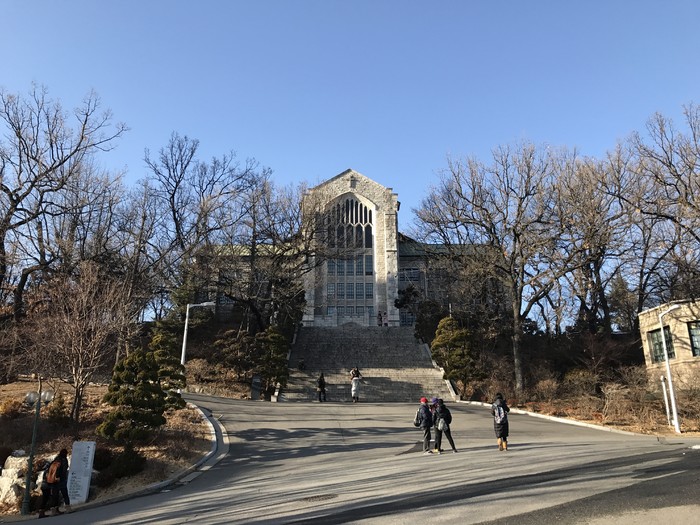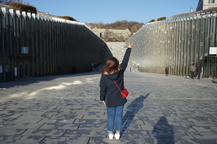 梨大(不要买化妆品假货多、标志系梨花墙、图书馆、教堂)[地铁二号线梨大站2号出口,出来左转进入小路(我记得我是直走的),一直行就到梨花墙]