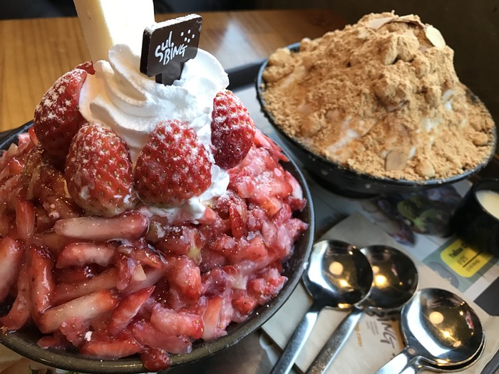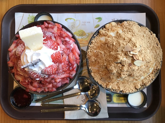 [往女人街走差不多到教堂(也是景点之一)前一个路口往左,直走到交叉口能看到雪冰](人均57rmb)(这里附近蛮多吃的,可以看看小红帽的地图) 点了草莓和花生味,都超好吃的。冰是有牛奶味的,颗粒很小,感觉口感像雪。草莓当季很甜量很多,花生味也好吃非常香,有一些Q弹圆圆的团子,口感很棒,虽然是冰但也蛮填肚子的。那时还看蛮多人点了蜜瓜味,半个蜜瓜都在冰上,得两个人吃的感觉。