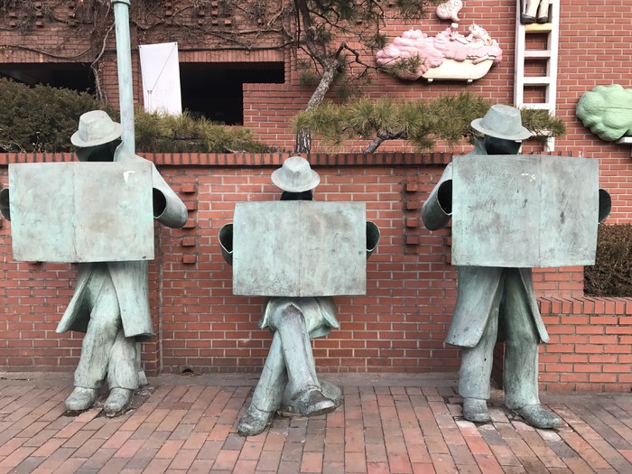按导航打算去附近仁寺洞看看,果然没开门,附近的步行街倒还是很热闹。路上排队效应买了个饼,忘记什么味道,一般般吧,可以不用排。