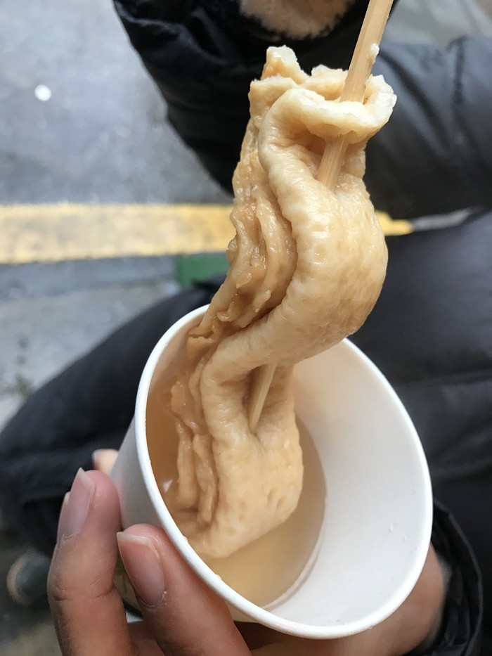 回去路上太冷了在小店买了鱼糕和炸炒年糕,鱼糕超好吃的,会给小杯汤你,汤也好好喝,很鲜甜,年糕一般,不推荐买炸的。