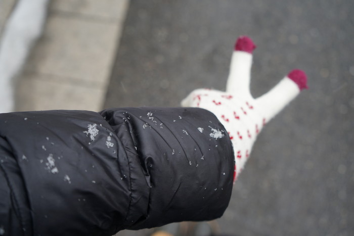 下雪了!!!!!!!期待这么久终于下雪了!!!!!!!!还是第一次看到雪,早上高兴得手舞足蹈,我姐像看智障的眼神一样看我。(昨天在壁画村买的手套)