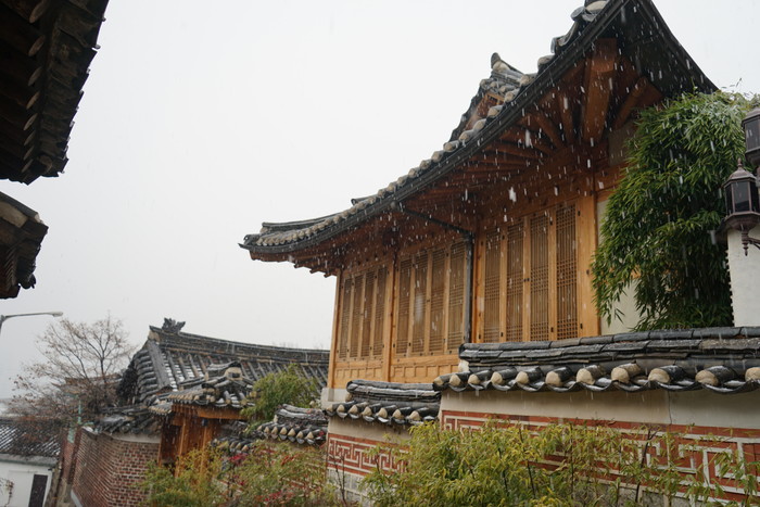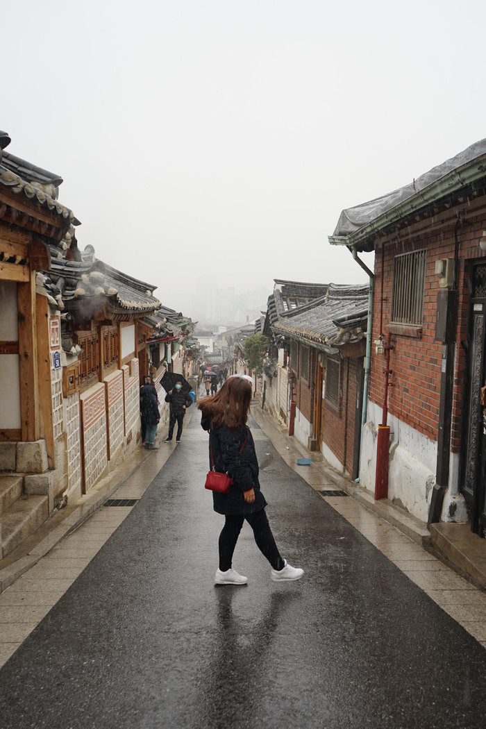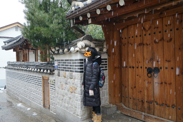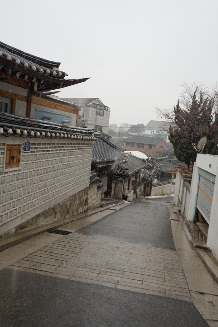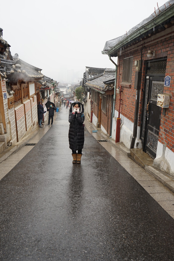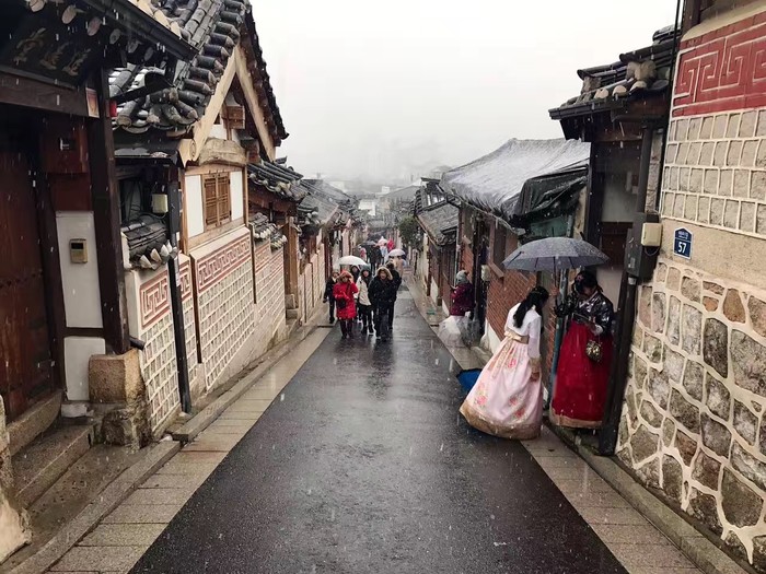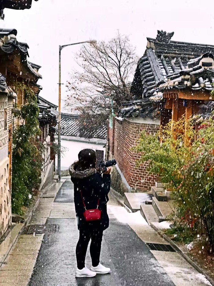 到我们走过去景点韩屋拍完照就非常多游客来了,也有人穿韩服来拍照。除了韩屋没什么了,一路有写“可以拍韩屋全景点”那个点要收费的。越走后面越大雪,又没带伞,衣服都打湿了,非常冷。