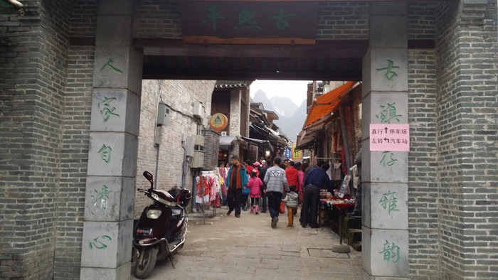 跟着人流走到一条石板桥对面就是兴坪古镇,里面有兴坪戏台,我走过了没去看,图二有教怎么去汽车站,基本就两部汽车,很多人坐,比较早就尾班车,印象5点左右,开去桂林蛮久的,到市中心路由点堵。