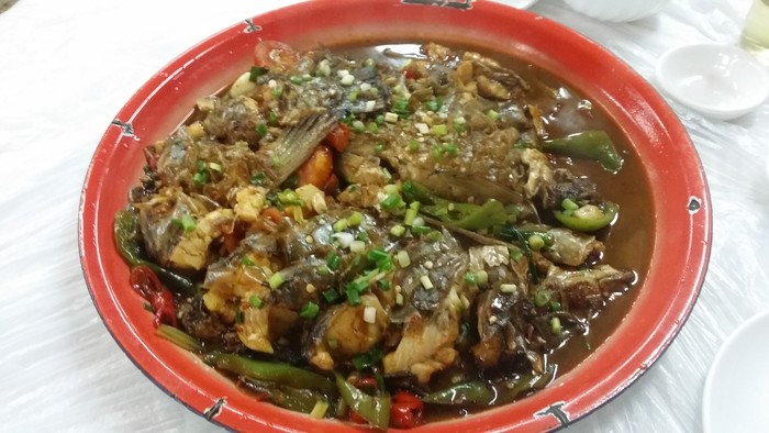 到阳朔市中心后已经快饿晕的两人随便找了一家进店吃了啤酒鱼、酿田螺。啤酒鱼挺好吃的,田螺不好吃。