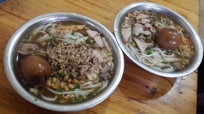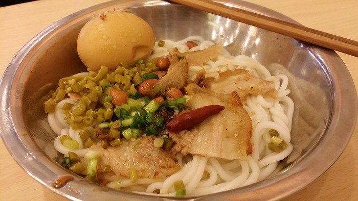 一早坐车回桂林,酒店在正阳步行街里面,非常多小吃,看大众点评在崇善米粉吃了桂林米粉,挺好吃的,虽然看大多数点评都说它比较坑,米粉不同平常吃的那样(只有我觉得平常吃的桂林米粉像塑胶吗),这个感觉真的是粉浆做出来的原始味道,不是Q弹的也不透明,口感有点像濑粉,是干拌粉,可以自助加骨桶汤,强烈建议加蛋干拌比较好吃,口干再去配汤,还可以加很多配菜。