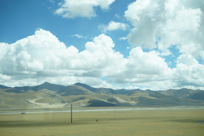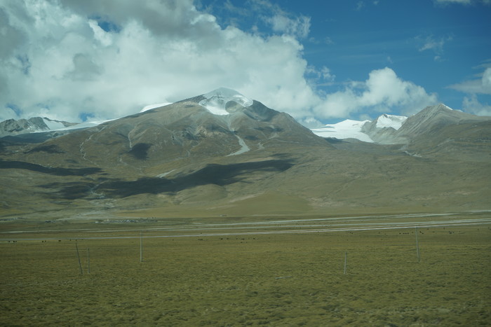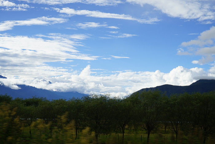 一路上会看到雪山大家都超级兴奋的。还没到拉萨已经能感受到云很低,真的是蓝天白云。如果有膨化食物到比较高的地方会膨胀起来。