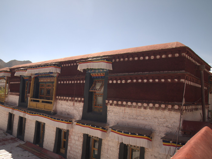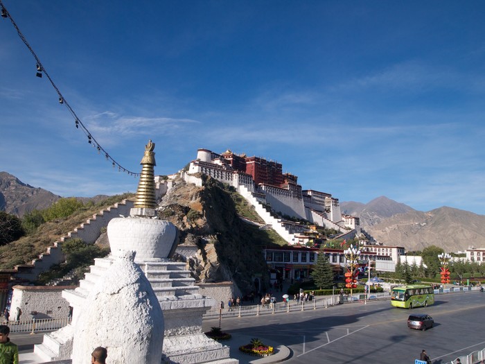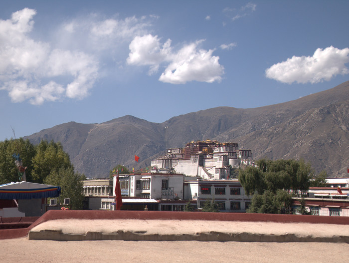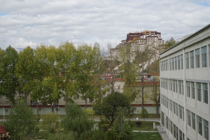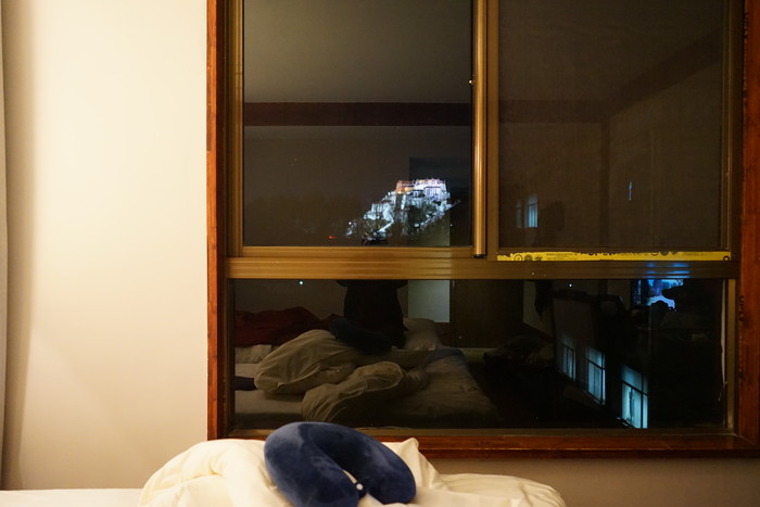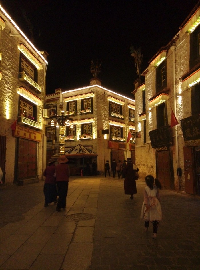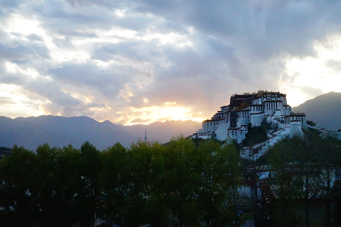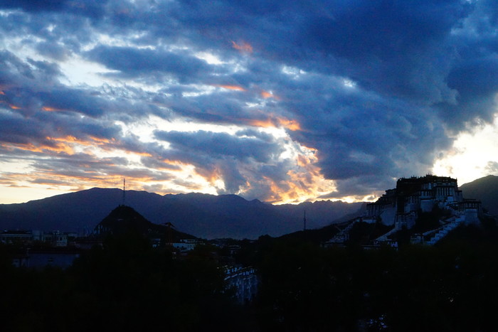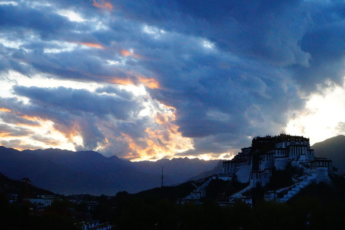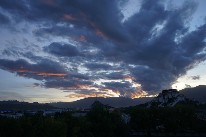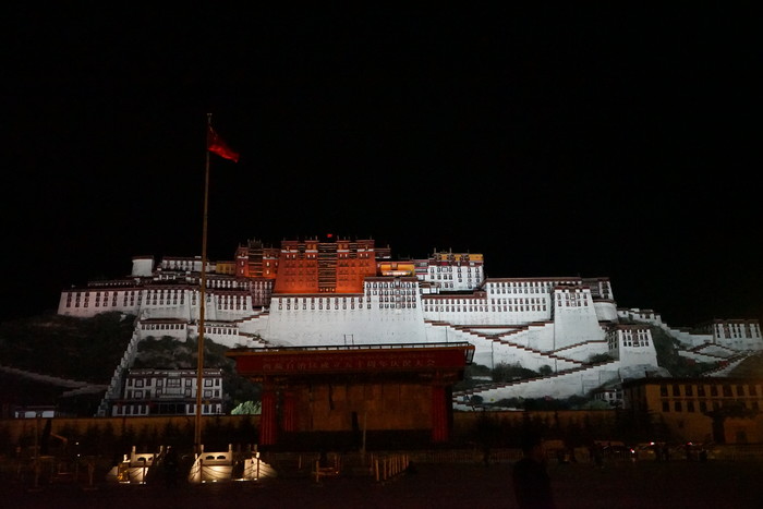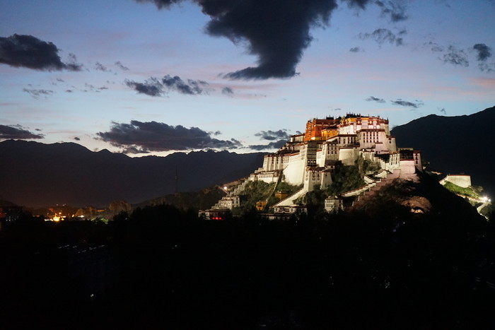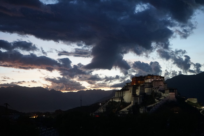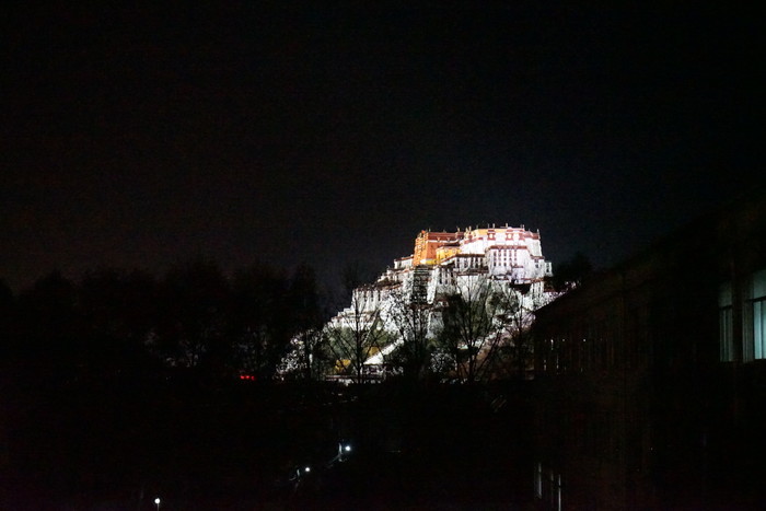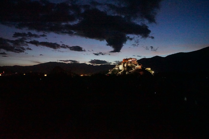 第二天下午才到拉萨,因为带着满多行李叫了出租车去能看布达拉宫的青旅,我们的房间也能看到布达拉宫的侧面,晚上在青旅楼上的饭店吃藏餐,点了酥油茶和其他几个比较辣的藏菜(忘记拍照了),那间饭店的二楼有专门可以拍布达拉宫的地方,我吃到一半打算上去等日落和夜景的时候就已经有非常多人架好长枪短炮在等日落了。拉萨夜晚还是能看到星星的,酒店基本都有加湿器,因为空气真的非常干,到后面比较冷的地方还会有电热毯。
