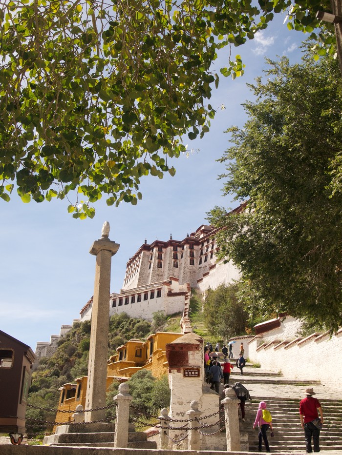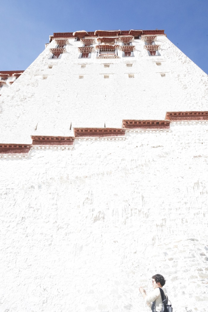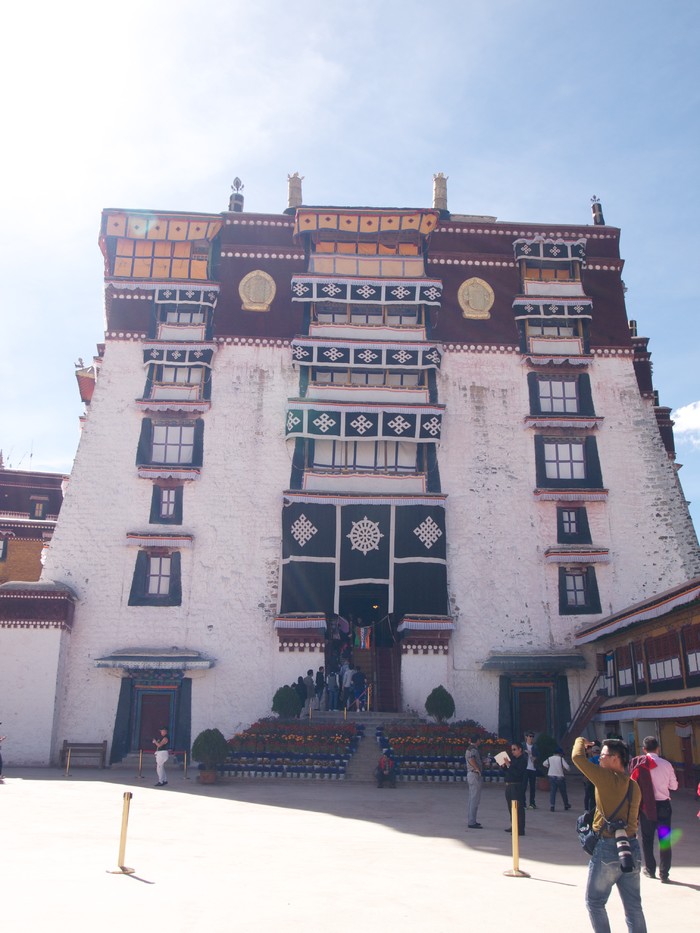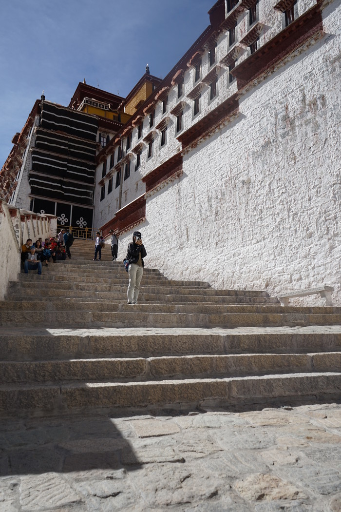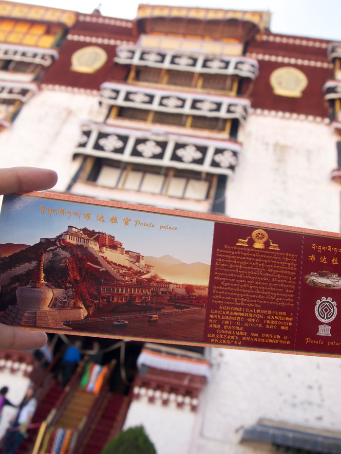 然后汇合表表哥他们出发去布达拉宫,我们是报当地的团,有导游解说,墙上红色的地方都是用珊瑚建的,布达拉宫没有缆车必须要自行爬楼梯上(真的挺累,最好带多点水,要爬一段路才有水卖 ,爬的过程也可以看看拉萨市),穿过黑色布的门有个小广场,广场是售票的地方,检票进门里面是不能拍照,印象中里面是佛像寺庙。