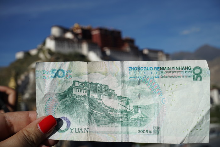 看完布达拉宫记得转转布达拉宫下面的经筒,然后走地下通道过对面布达拉广场50元人民币拍照的地方。拍完还可以去50元斜对面、布达拉宫西门的前站牦牛酸奶坊,点了水果酸奶,酸奶挺酸的,挺好吃的,果然葡萄干配酸奶才是王道(忘了拍照)