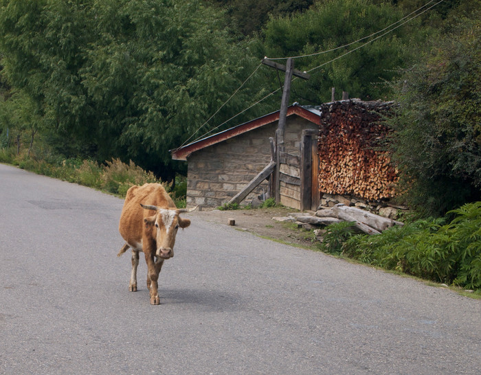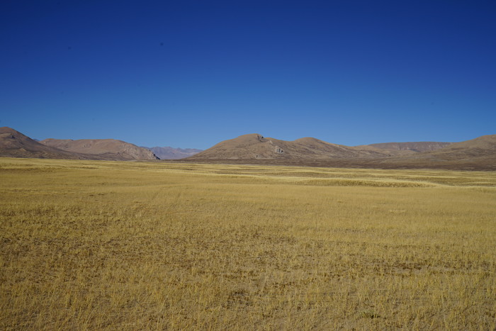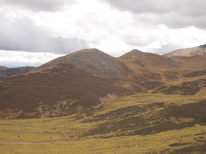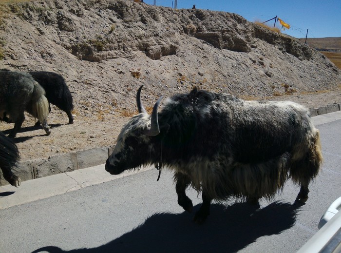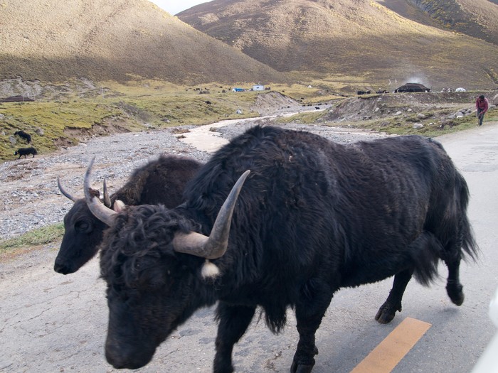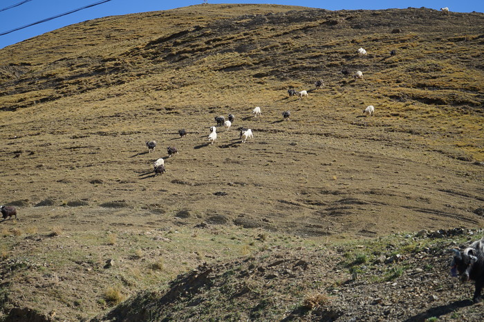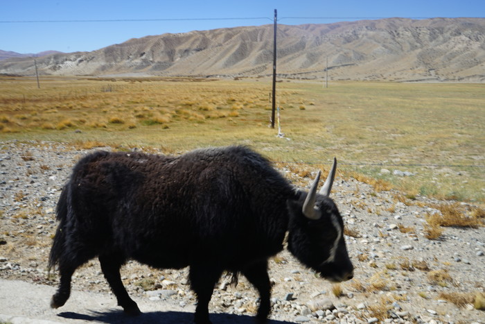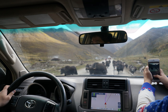 一路上的植被开始大面积变黄,途中还被一群耗牛挡住去路。