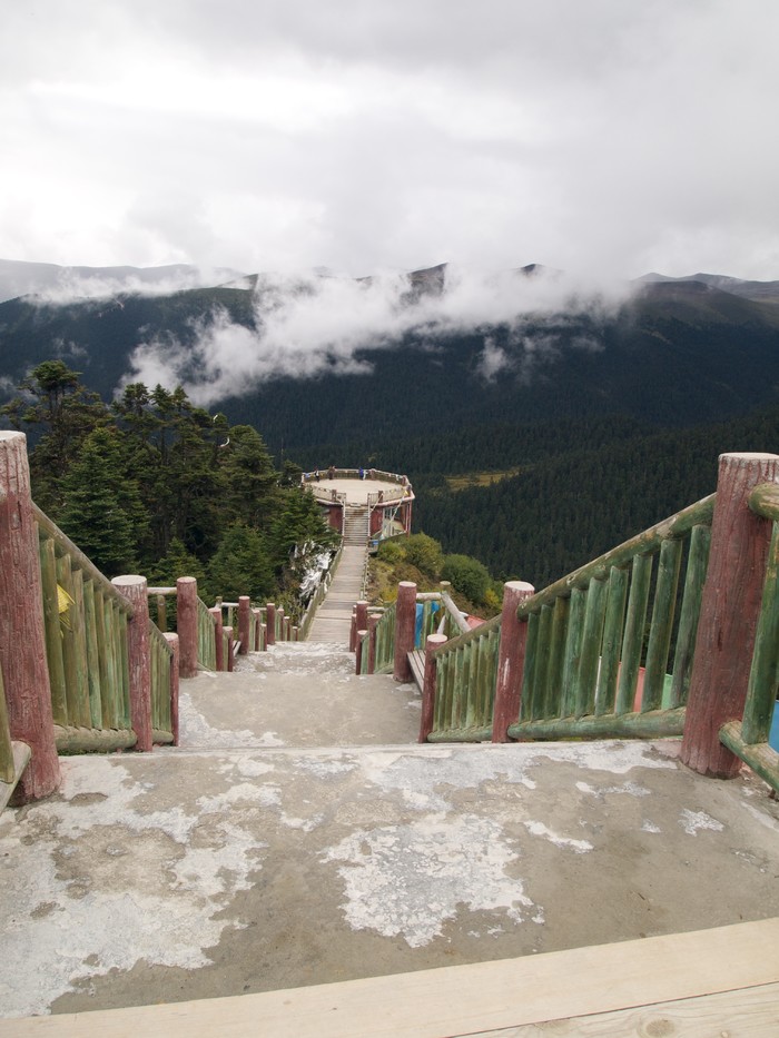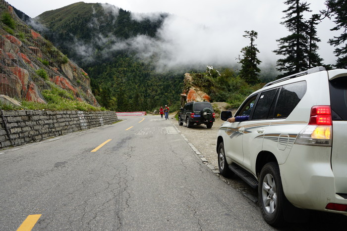途中来到一个地方,好多人在这里停车拍照,这里的云真的好底,一团团绵绵软软的云雾贴着湖面悬浮而簇,真的挺像置身于童话仙境。到突击拉山的时候向远方望去,我们站的位置居然比云还要高。