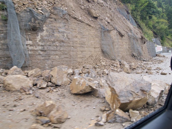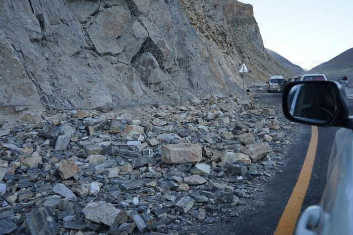 一路在虽然都有些网用来网住边上的石头,可是还是会有些掉落在路上,开车的时候真的要分外小心。