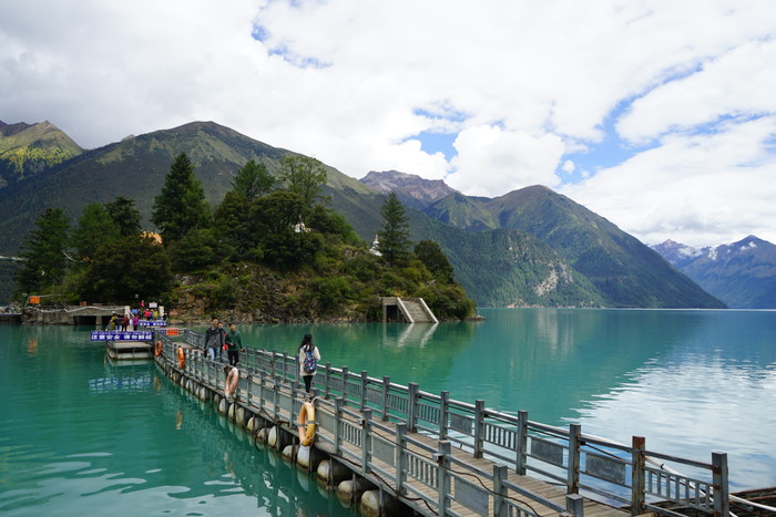 然后往巴松措方向赶,一路上林芝的路都很好走,就是通往巴松措的有段路在修路,路面都非常泥泞,买票进去可以开到游客中心,也可以搭他们的车。巴松措真的好美啊。