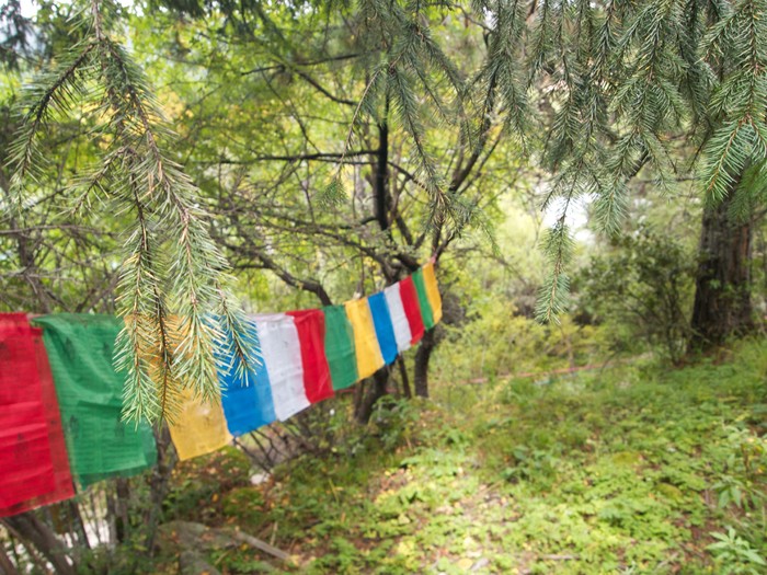第二天早早拿车出发去林芝,经过米拉口山,因为我们走国道所以走的比较慢点,国道旁边就是雅鲁藏布江。在米拉口山或者其他停车休息点都很多祈福旗。一路开到林芝市区已经晚上了。