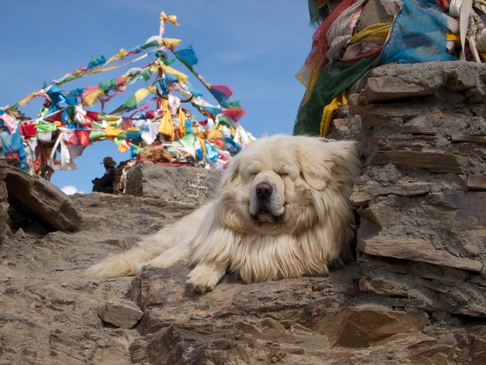 在岗巴拉山还看到藏獒,好像十几块钱可以合照,白色的那只很可爱,可惜我还是很怕。