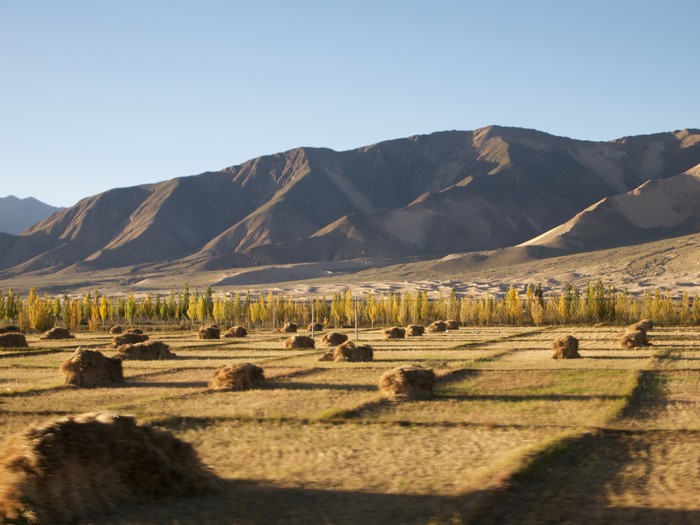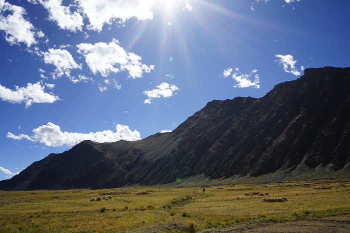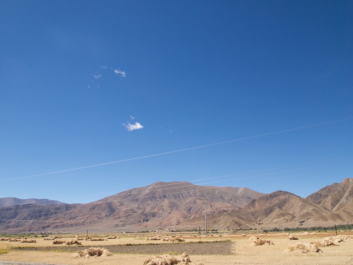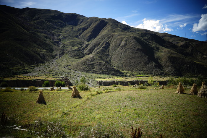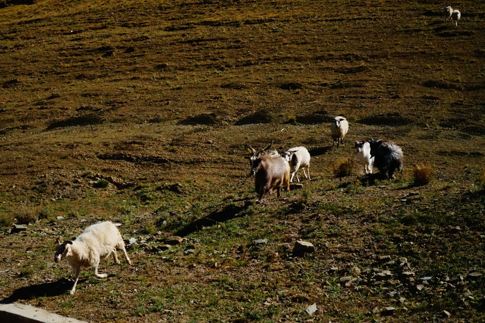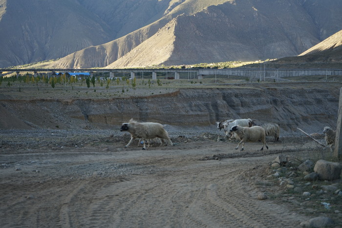 继续赶路,路上看到一堆堆的就是青稞(西藏因为水土问题,大部分田地都是种植青稞),途中轮到被羊群挡路了,还顺道看了日落。