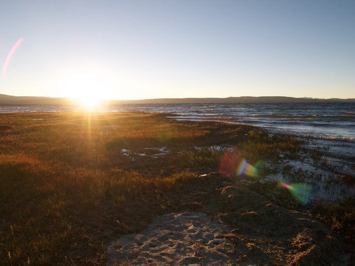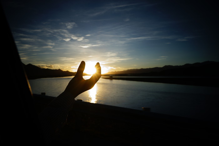 快到傍晚的时候来到了三大圣湖之一的玛旁雍措,看到不少信徒在转湖,我姐说今年应该是去神山转山的。司机还一路开着车帮我们完成了转湖。玛旁雍措真的好大,而且还能望到神山---冈仁波齐峰 。这次不仅能摸到圣湖水还能在圣湖看日落,红霞映在一片片山面上,配着一波波碧荡的湖水,真的美极了。欣赏如此良辰美景的代价是我们去休息点的途中就是天黑了,抹黑前进地同时还一直担心撞到各种兔子、羚羊和麋鹿等的小动物。