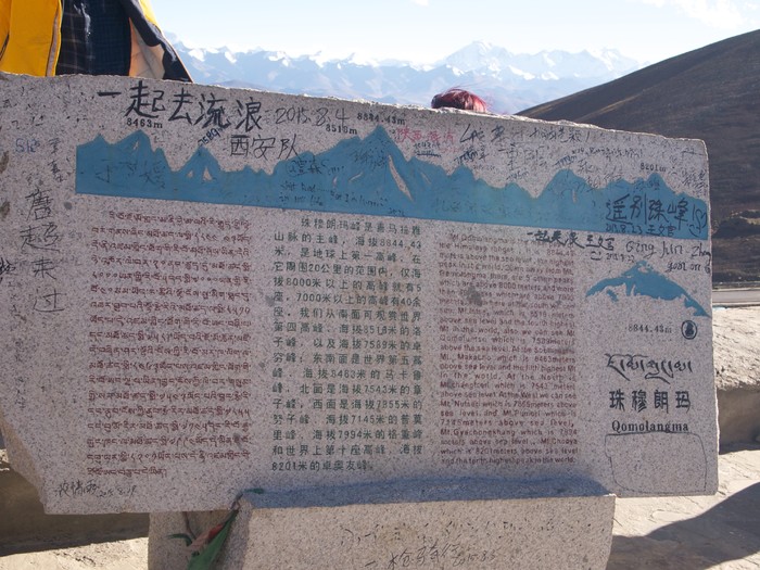 第二天8点前会有大巴上珠峰一个刻着海拔的石碑,自己的汽车是不能上,由于昨晚太悲催了,个个都高反,虽然我们都很想上,但是我们也是有心无力,吃完早餐,用信用卡刮车玻璃上的冰(记得带塑料刮片),等我姐他们寄完明信片就下山了(这里只有邮筒,没有明信片和邮票卖,要寄的要提前预备)。途中还看到居民徒手清理山上危险的岩石。途中还迷路,经过一个不知名的湖也好美,还好最后顺利回到日喀则,如果到日喀则要你出示限速单,你可告诉他你从大本营下来也会放行。这天晚上表表哥和水哥他们去看医生,我和我姐基本在日喀则待着,等水哥确诊是严重高反,不能继续旅程,我们就联系租车公司派司机去仁布接应。方便表表哥他们坐火车回拉萨。